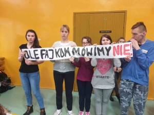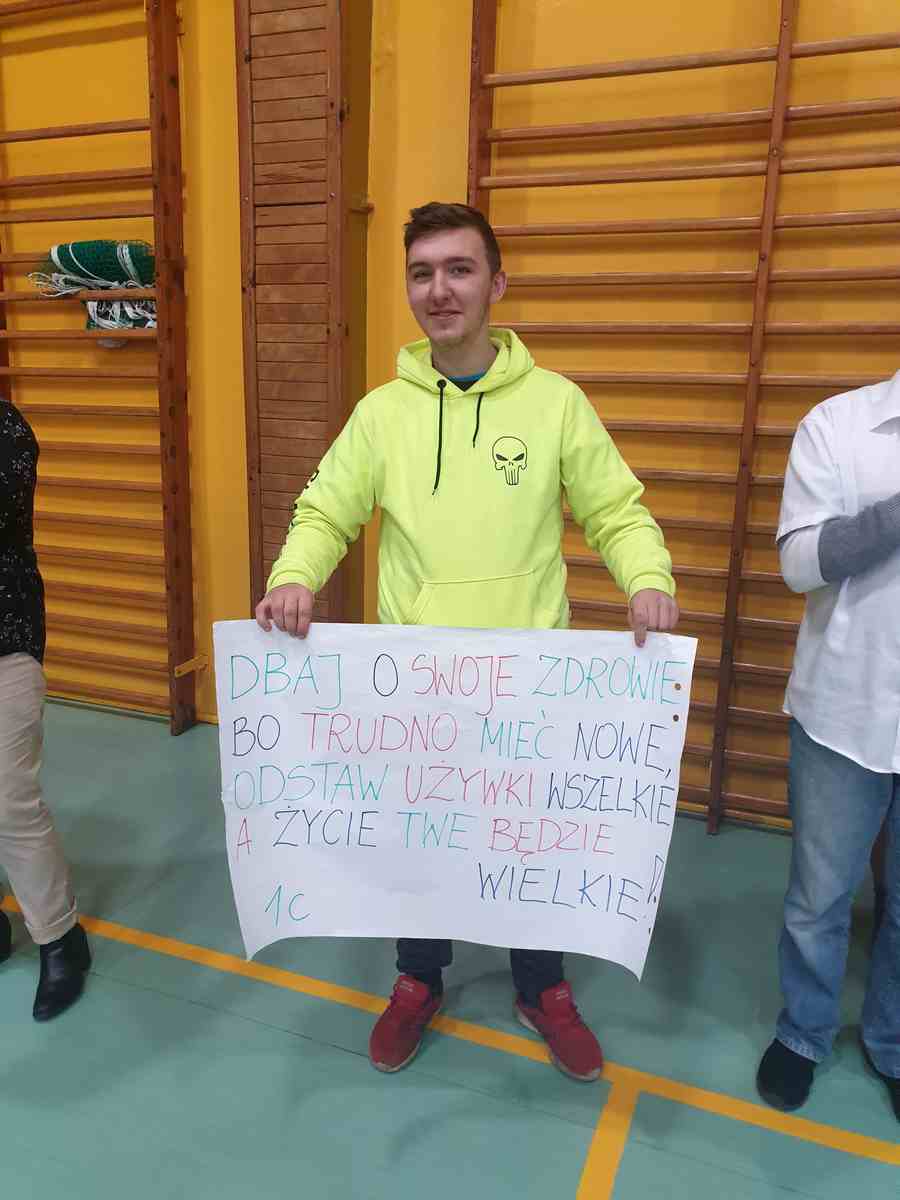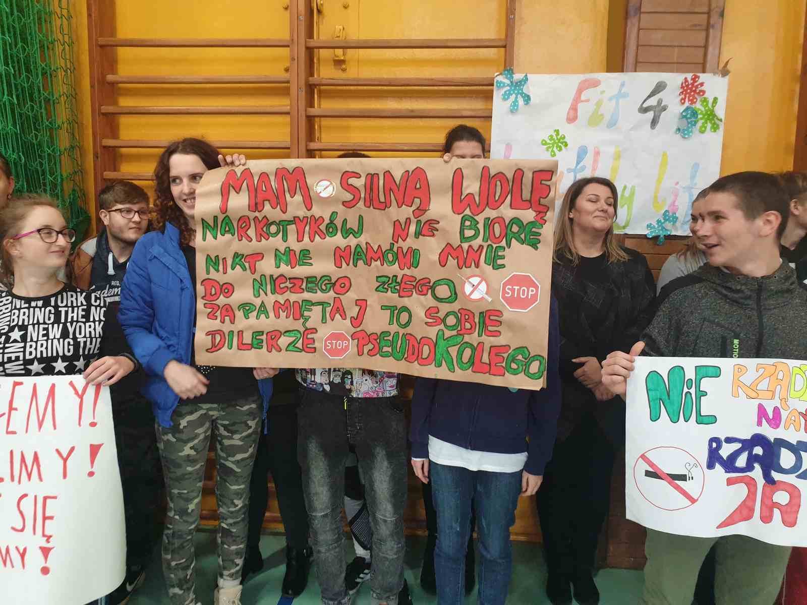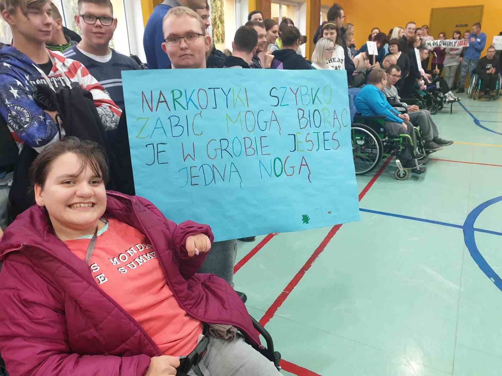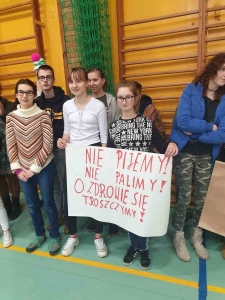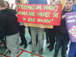 W miesiącu listopadzie, w szkole przysposabiającej do pracy oraz branżowej szkole I stopnia, odbył się konkurs na najlepsze hasło promujące wolny od uzależnień, zdrowy styl życia. Wszyscy uczniowie wraz z wychowawcami przygotowali plakaty, transparenty z hasłami. Podczas apelu szkolnego klasy publicznie zaprezentowały swoje autorskie propozycje. Spośród zgłoszonych haseł jury konkursu wybrało pięć najciekawszych.