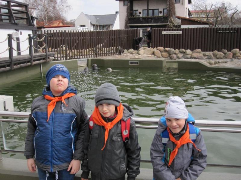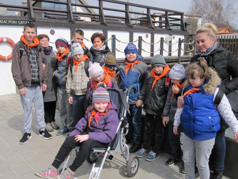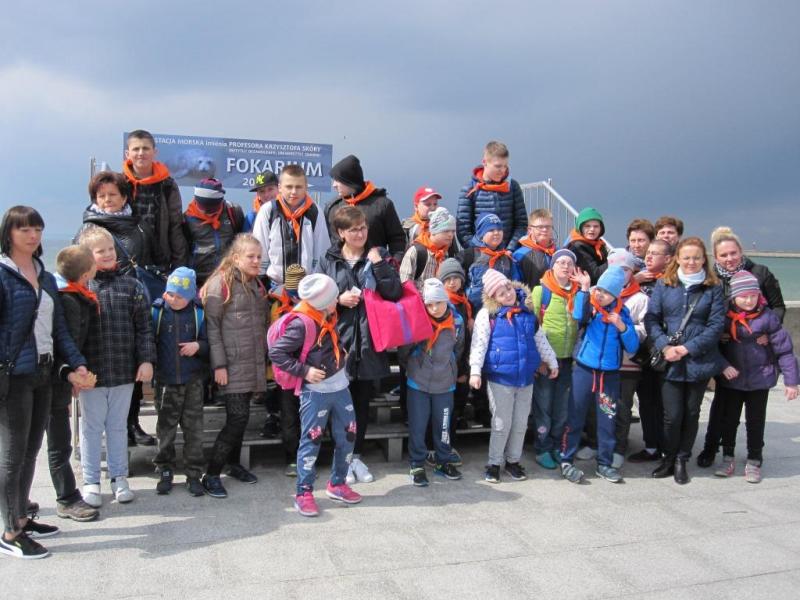 27 kwietnia uczniowie klas: II/IIIa, IIIb, IV/Va, Vb i V/VIa wraz ze swoimi wychowawczyniami wybrali się na wycieczkę do Fokarium w Helu na Półwyspie Helskim. Największą atrakcją dla zwiedzających Fokarium jest pora karmienia fok. Przybyliśmy punktualnie na focze śniadanie, na którym serwowano największy przysmak fok – surowe śledzie. Zajadały się oczywiście tylko foki, my raczej nie mięliśmy ochoty na taki rarytas. Natomiast bardzo chętnie i z dużym zaciekawieniem obserwowaliśmy jak foki wykonywały polecenia swoich opiekunów. Zwierzęta te potrafiły grzecznie czekać na kolejną rybkę do zjedzenia. Rozumiały znaki i gesty pokazywane przez opiekunów. Reagowały na dźwięk specjalnego gwizdka, chyba wysokotonowego, którego my w ogóle nie słyszeliśmy. Dokładnie wiedziały, co mają robić. Kiedy popłynąć po zabawkę wrzuconą do wody przez opiekuna i tak jak aportujący pies oddać ją z powrotem. Rozumiały, kiedy zanurkować i kiedy wyjść na brzeg, aby opiekun mógł zobaczyć czy nic im nie dolega. Foki to wyjątkowo mądre i piękne morskie zwierzęta Była to bardzo interesująca i udana wycieczka, na zakończenie której udaliśmy się do McDonalds na małe co nieco. Tego dnia nawet pogoda nam sprzyjała, chcemy wierzyć, że to właśnie specjalnie dla nas, zza deszczowych chmur na kilka godzin wyszło wówczas słońce Nauczyciele: Baranowska Irena, Hajkowicz Agnieszka, Kozłowska Krystyna, Pranga Edyta, Wiśniewska Ewa.