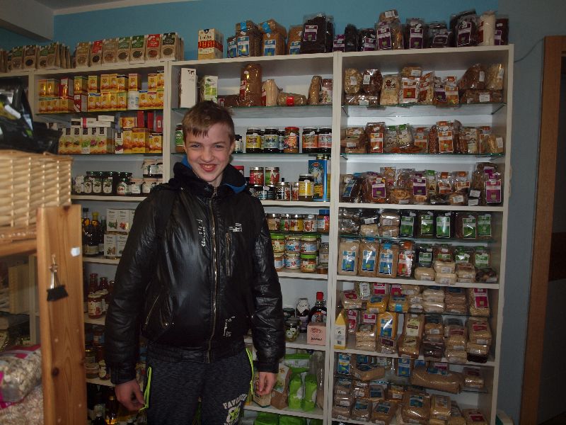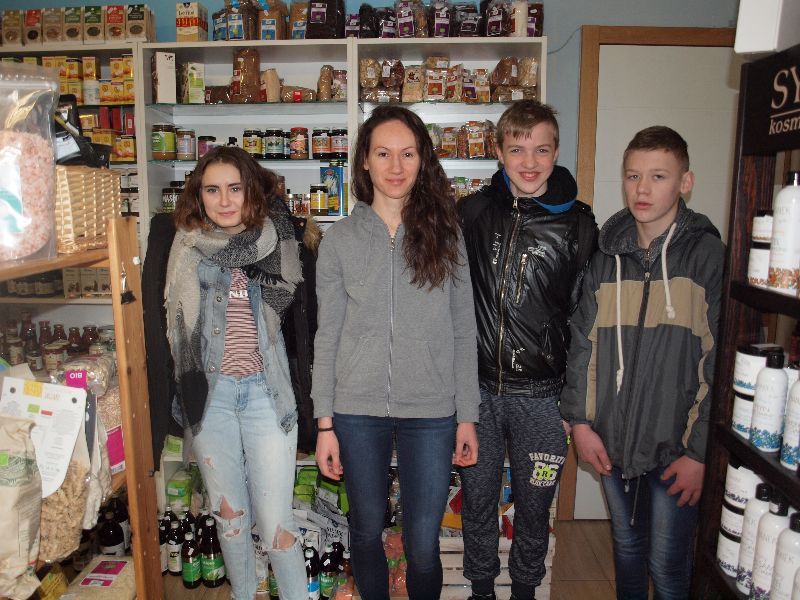 Tu nastąpiła degustacja czarnej soli, rzeczywiście w ustach został nam posmak jajek. Na zakończenie wizyty obejrzeliśmy szeroki asortyment sklepu: kosmetyki naturalne, warzywa, owoce z ekologicznych upraw, kasze, mąki, przyprawy, herbaty i wiele innych. Ustawiliśmy się do pamiątkowego zdjęcia z właścicielką. Jesteśmy zadowoleni z wizyty i pełni optymizmu, że nasz styl życia może w przyszłości stać się pomysłem na biznes. Jednocześnie po raz kolejny, przekonaliśmy się jak ważna jest świadomość tego, co jemy i skąd pochodzą produkty z których przygotowujemy nasze posiłki.