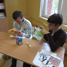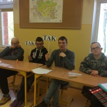 „Zdrowo jem i o odżywianiu wszystko wiem” – to hasło przewodnie konkursu, który odbył się 28 marca w ramach projektu edukacyjnego Zdrowy Styl Życia oraz w ramach programu Trzymaj Formę. Celem konkursu było propagowanie właściwych nawyków żywieniowych i aktywnego trybu życia. Organizatorzy, czyli uczniowie klasy III gimnazjum wraz ze swoimi opiekunami p. A. Kroplewską i p. N. Wolińską przygotowali pięć zadań dla Uczniów Szkoły Specjalnej Przysposabiającej do Pracy. Zadania polegały na stworzeniu piramidy żywienia, właściwym odczytywaniu etykiet, układaniu zdrowego menu, rozpoznawaniu właściwych i niewłaściwych nawyków żywieniowych, oraz rozpoznawaniu smaków, które sprawiło uczniom najwięcej radości. W konkursie wzięło udział 8 par uczniów, a wśród nich najlepsi okazali się uczniowie klasy III a Dawid Duda i Jarosław Maszota, którzy wykazali się ogromną wiedzą, a także umiejętnością pracy zespołowej.